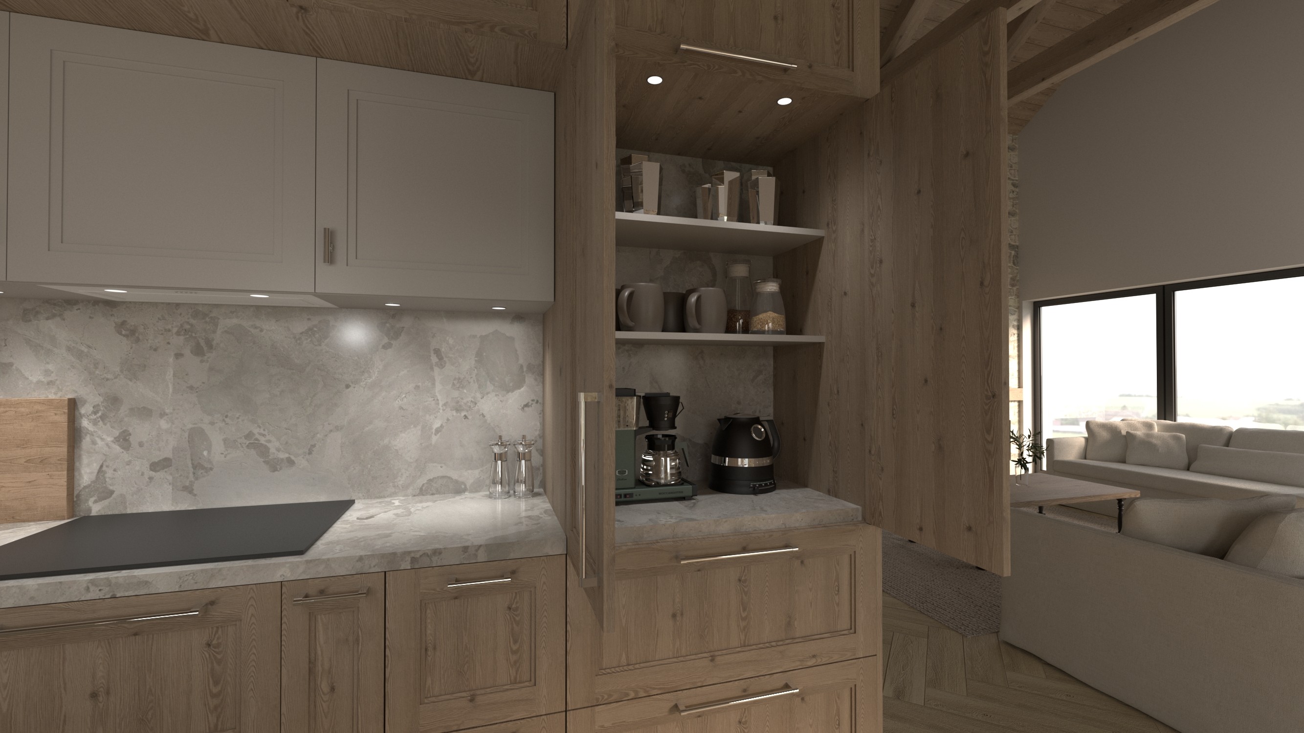 Ten projekt to odpowiedź na potrzebę autentyczności. W świecie pełnym sztuczności, moi klienci pragnęli czegoś prawdziwego. Dlatego kamień jest naturalnie chropowaty, drewno ma swoje słoje i odcienie, a kolory są wyciszone, niemal medytacyjne. To wnętrze nie krzyczy. Pozwala być sobą, odpocząć, naładować baterie. To dom, który rozumie, że prawdziwy luksus to nie przepych, ale przestrzeń, w której możesz oddychać pełną piersią.